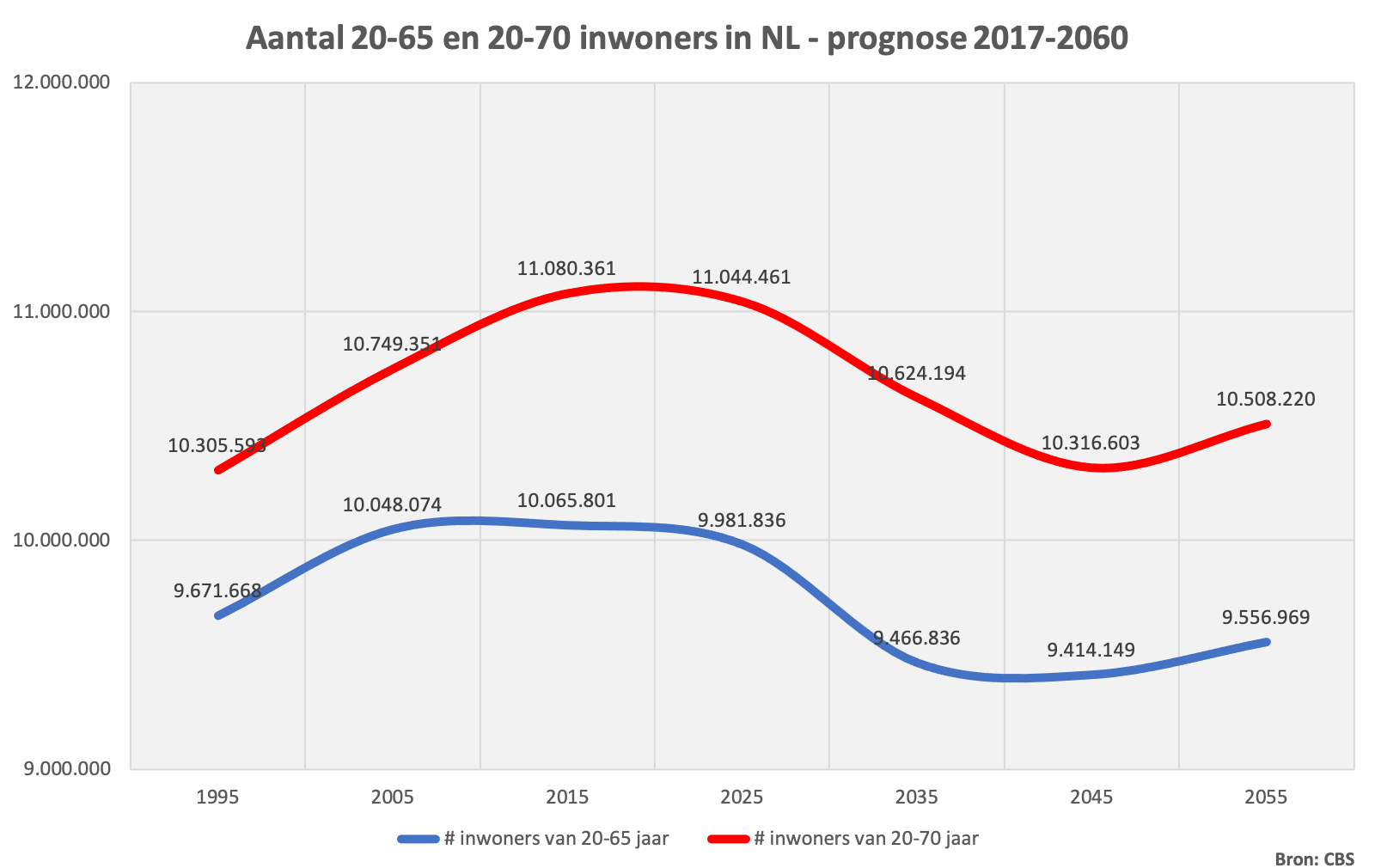 Sinds 2011 krimpt de potentiële beroepsbevolking (het aantal 20–64-jarigen). Naar verwachting bestaat in 2040 de demografische druk – de verhouding tussen het aantal jongeren plus ouderen en de potentiële beroepsbevolking – voor ruim 50% uit ouderen. In de zestiger jaren van de vorige eeuw was de demografische druk vergelijkbaar, echter bestond deze uit slechts 20% ouderen.